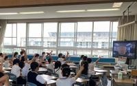 初めは、緊張して画面を見つめるだけの子どもたちでしたが、中学生による学級紹介やクイズなどで徐々に打ち解けていきました。